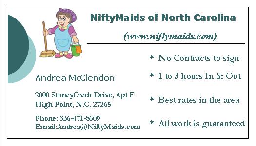 1. Nifty Maids Flyer - Click "A", "B", "C" , "D" ... to download.